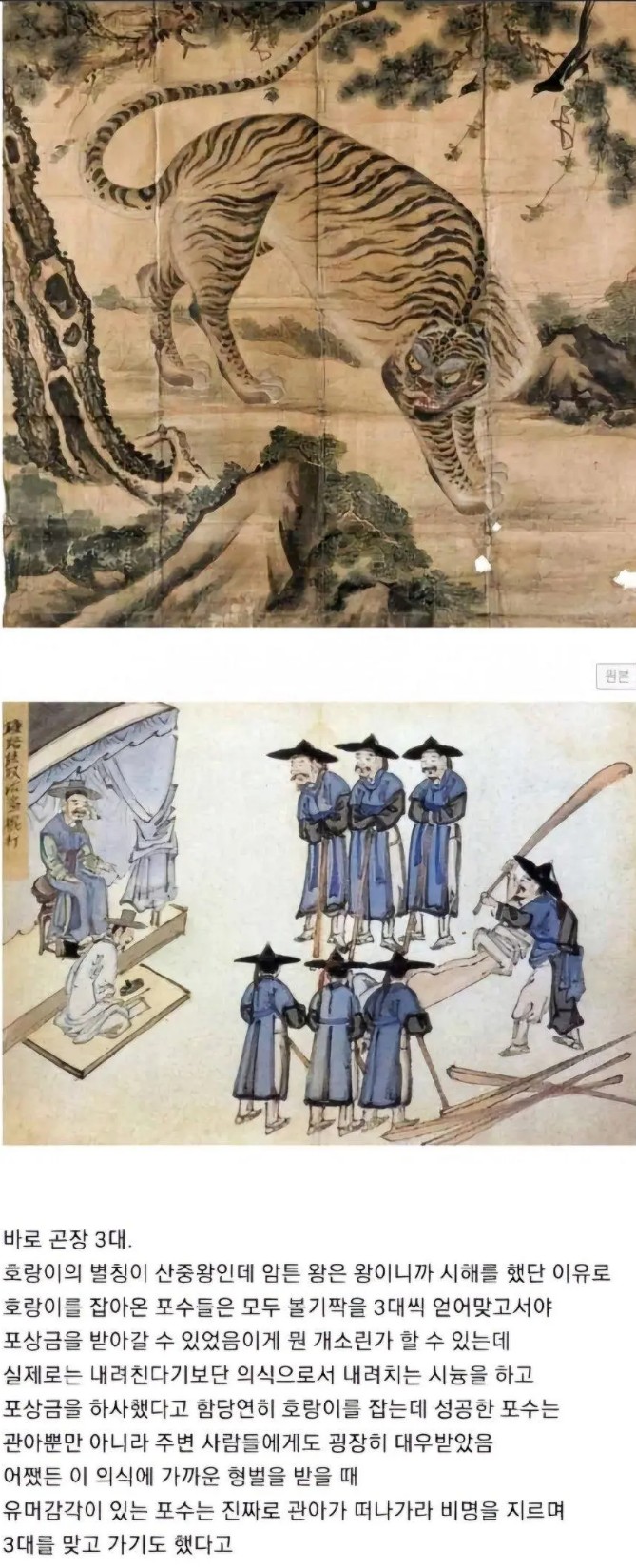 결국은 그냥 이 포수가 호랑이를 잡았다고 온동네에 광고를 해주는거였네 ~ 지금도 호랑이는 보면 무서운데 저 시대에 호랑이를 잡았다는건 정말 대단해 보인다