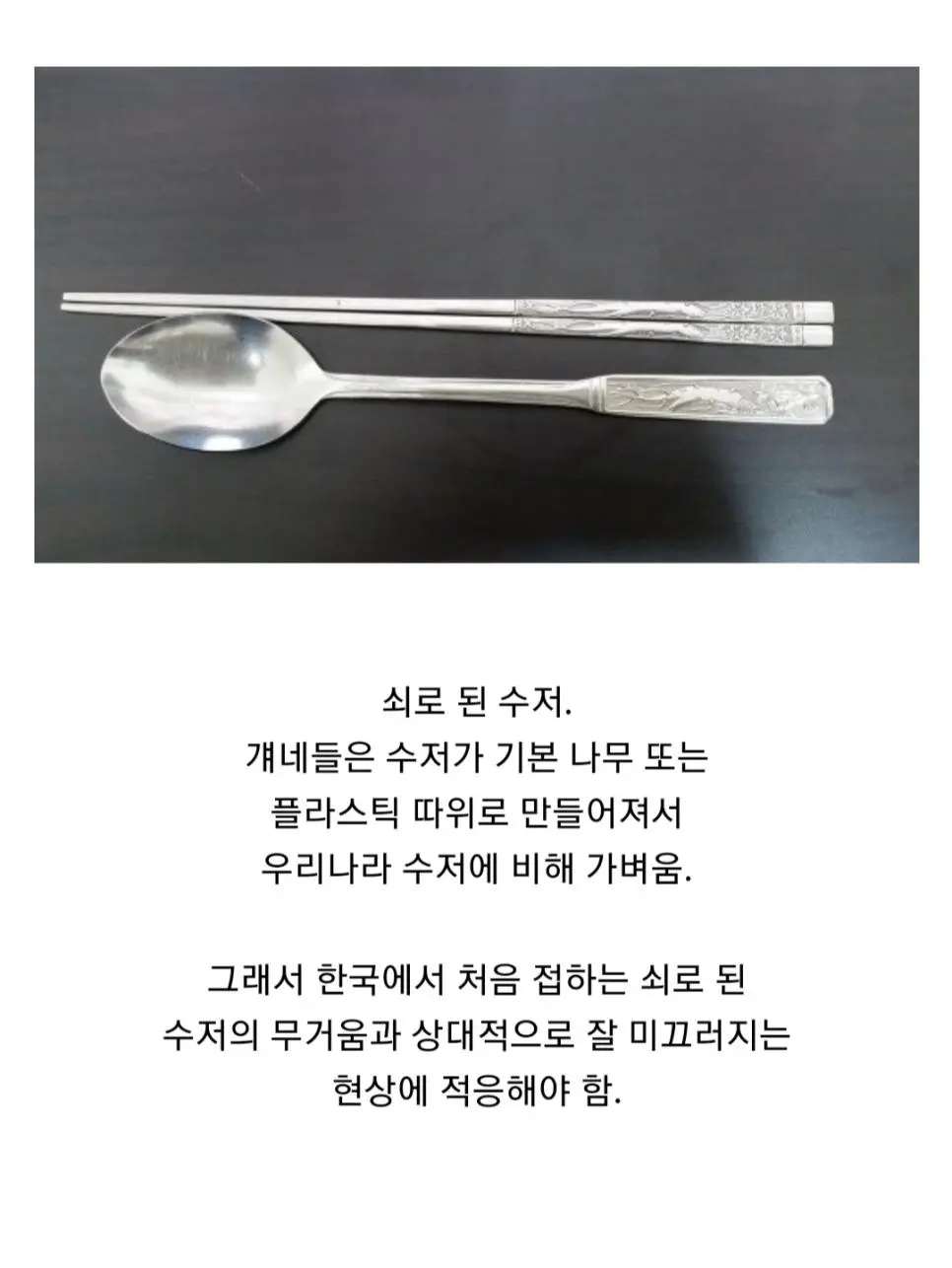 옛날에 시골에 가면 할아버지가 드시건 구리 숟가락인가? 그건 지금 우리가 쓰는 젓가락과 수저보다 더 무거웠던걸로 기억함